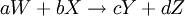 Donde: W, X, Y, Z, representan los simbolos quimicos de las moleculas o átomos que reaccionan (lado izquierdo) y los que se producen (lado derecho). a, b, c, d, representan los coeficientes estequiométricos, que deben ser ajustados de manera que sean reflejo de la ley de conservación de la masa. La interpretación física de los coeficientes estequiométricos, si estos son números enteros y positivos, puede ser en átomos o moles: Asi, se diría de la ecuación anterior: 1. a atomos (o moleculas) de W reaccionan con b atomos (o moleculas) de X y producen c atomos (o moleculas) de Y y d atomos (o moleculas) de Z. 2. a moles de atomos (o moleculas) de W reaccionan con b moles de atomos (o moleculas) de X y producen c moles de atomos (o moleculas) de Y y d moles de atomos (o moleculas) de Z. Por ejemplo el hidrógeno gas (H2); puede reaccionar con oxígeno gas (O2) para dar agua (H2O). La ecuación química para esta reacción se escribe: H2 + O2 ---> H2O El simbolo "+" se lee como "reacciona con", mientras que el simbolo "->" significa "produce". Para ajustar la ecuación, ponemos los coeficientes estequimetricos. H2 + 0,5 ó 1/2 O2 --> H2O La ecuación está ajustada y puede ser interpretada como 1 mol de moleculas Hidrogeno reacciona con medio mol de moleculas de oxigeno produciendo 1 mol del compuesto agua. Las fórmulas químicas a la izquierda de "->" representan las sustancias de partida denominadas reactivos, a la derecha de "->" están las fórmulas químicas de las sustancias producidas denominadas productos. Los números delante de las fórmulas son llamados coeficientes estequiométricos. Estos deben ser tales que la ecuación química esté balanceada, es decir, que el número de átomos de cada elemento de un lado y del otro sea el mismo. También En las únicas reacciones que esto no se produce, es en las reacciones nucleares. Los coeficientes 1 se omiten. Enlaces externosDescripción de un algoritmo para igualar ecuaciones Químicas utilizando el método algebráico, y su implementación en Logo (Lenguaje de programación) Véase tambiénReacción química Categoría: Química |